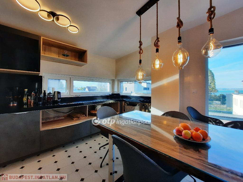 Balaton déli part, Siófok, 91 m2 panorámás penthouse lakás 68 m2 tetőterasszal eladó. Az igényes kialakítású ingatlan Széplak városrészben helyezkedik el egy vízparti, 6 épületből álló lakóparkban. A liftes, földszint + 2 emeletes épületben 5 lakás került kialakításra, a legfelső szintet teljes egészében ez az egyetlen lakás foglalja el. A lakásban egyedi belsőépítészeti megoldások készültek, kiemelten: magas minőségű beépített konyhabútorral, gépekkel, egyedi színvonalas felületképzésekkel és belső ajtókkal kivitelezve. A fűtés - hűtés, meleg víz előállítás a lakáshoz egyedi hőszivattyúról megoldott, mennyezet hűtéssel-fűtéssel, kiegészítő klímaegységgel. A 2022-ben átadott lakópark felszín alatti részén közös kerékpártároló, teremgarázs, és külön tárolóhelyiségek épültek. A szépen gondozott, parkosított kertben játszótér és medence szolgálja a lakók kikapcsolódását. A társasháznak 3 irányban van közút csatlakozása, ebből az egyik közvetlenül határos a szabad stranddal. A lakáshoz pluszban vásárolható 2 db teremgarázs-hely és 2 db 3 m2-es tároló. Részletekért, megtekintésért keressen telefonon!