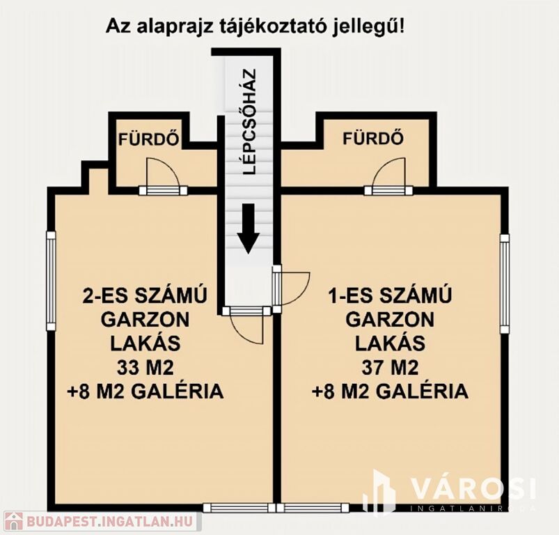 Figyelem! Jelen hirdetés az alaprajzon szereplő 1-es számú garzon lakásra vonatkozik. Eladó az alaprajzon szereplő 2-es számú garzon lakás is 54,9 millió forintos áron.