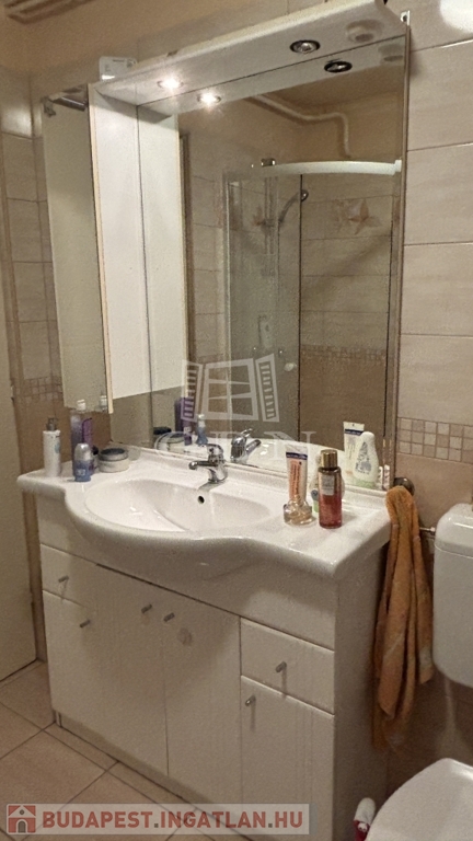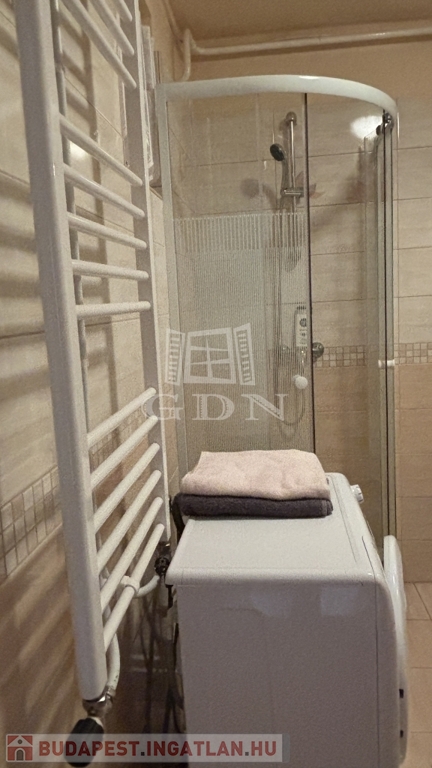 Fürdőszoba, tusolóval, wc, mosdó, törölköző szárító