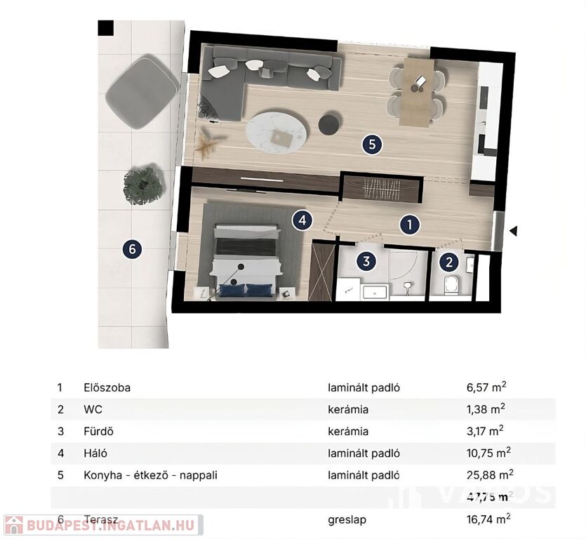 Figyelem! Jelen hirdetésben található alaprajz az "A" épület 102-es lakásához kapcsolódik, a képek látványtervek! További információért, aktuális árlistáért, szabad lakásokért és alaprajzokért keressen bizalommal!