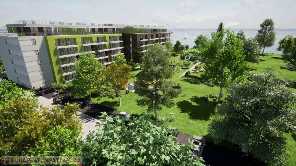 Siófok hangulatos, panorámás részén kerül megvalósításra ez a közvetlen vízparti 100 lakásos, újépítésű társasház.