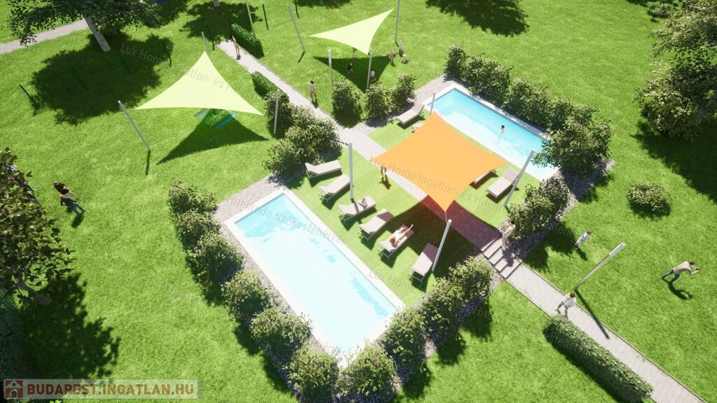 A beruházás keretein belül a tökéletes kikapcsolódás érdekében gyermekjátszóteret, illetve kültéri medencéket is biztosítanak a tulajdonosok számára.