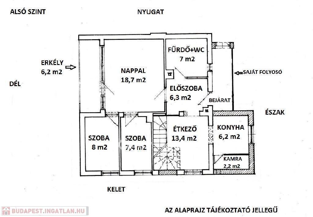 A lakás bejárata az 1. emeletről nyílik.