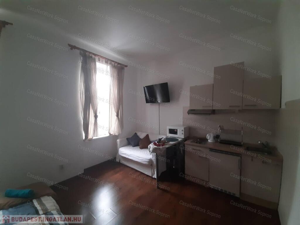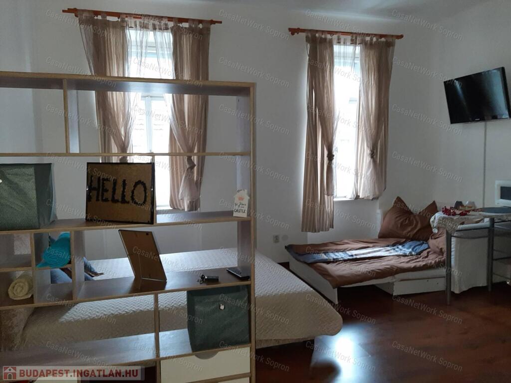 Kettő az egyben!Két első emeleti kis lakás, Sopron belvárosához közel eső részen, egy helyrajzi számon eladó.A két lakás összesen 68 m2 és egy közös használatú előtér választja ketté. Mindkét lakás amerikai konyhás-hálóteres kialakítású, a fürdőszoba WC-vel közös helyiségben kialakított. A belmagasság (3,2 m) ellenére nagyon kicsi a fűtésszámla, ami részben a vastag falaknak köszönhető. A polgári jelleg nemcsak költséghatékonysága miatt, atmoszférájában is az ingatlan vonzerejét erősíti. Jelenlegi tulajdonosa airbnb-re hasznosította, mely tartós bevételi forrást biztosított számára, költözés miatt viszont most kénytelen megválni a lakásoktól. A teljes bútorzat a vételár része.A lakáshoz tartozik egy kis méretű tároló és egy padlásrész mely az első, utcafronti lakásrész felett található- Igy lehetőség nyílik az ingatlan esetleges bővítésre is.A társasház 6 lakással rendelkezik, jelentós megtakarítással rendelkezik mely a jövőben tervezett felújításokat fedezi.Az udvar fel lett osztva a lakások között, így ehhez az ingatlanhoz is tartozik egy kb. 35 m2 nagyságú kis kertrész, ami saját célra alakítható. Rövid időn belül birtokba vehető.A belváros csak egy séta, mégis nyugodt környék.