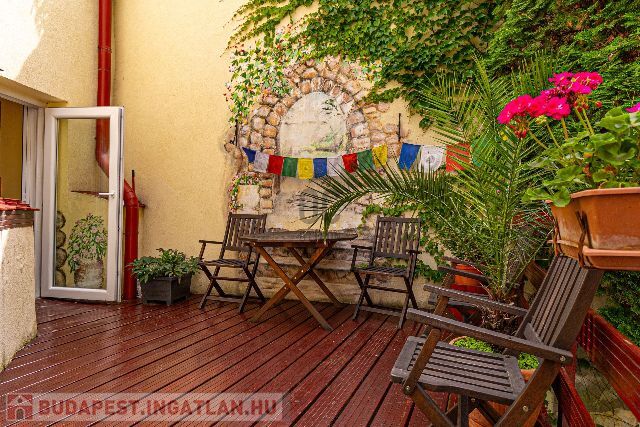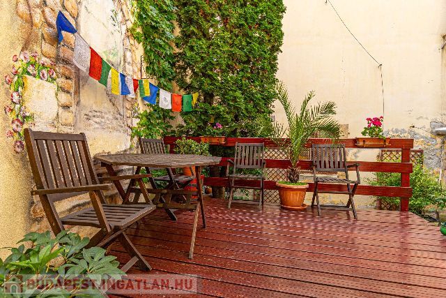 Ez a bájos lakás megőrzi a régi idők eleganciáját és modern kényelmi funkciókat is kínál. Az ingatlan 69 négyzetméteres lakótere magában foglal egy konyhát étkezővel, egy fürdőszobát WC-vel, egy külön WC-t, egy gardróbot, kamrát, valamint egy nappalit, melynek galériájában hálószoba lett kialakítva, továbbá egy hálószobát szintén galériával. A lakrészből közvetlenül egy privát, hangulatos kis udvarra léphet, mely saját terasszal rendelkezik – tökéletes helyszín a reggeli kávézásra, olvasásra vagy esti borozgatásra.