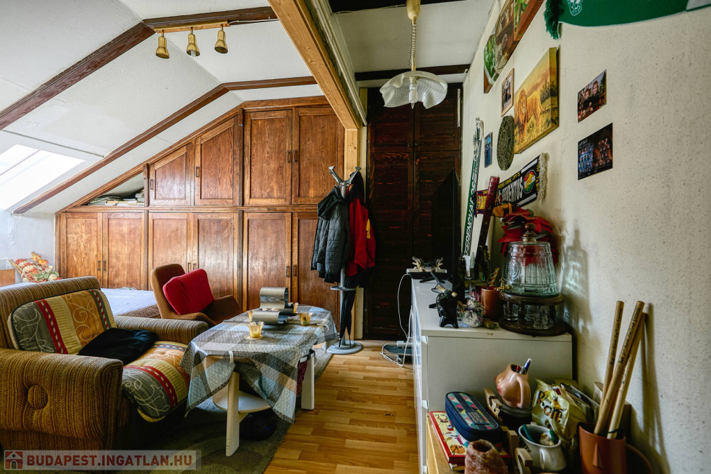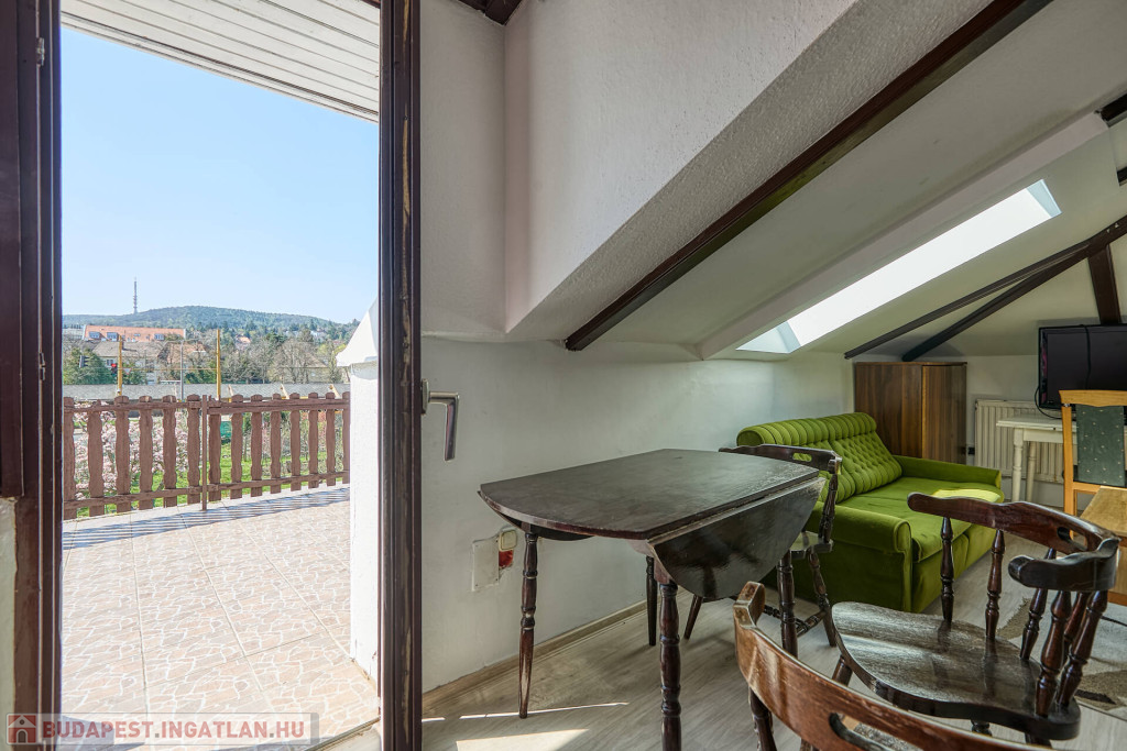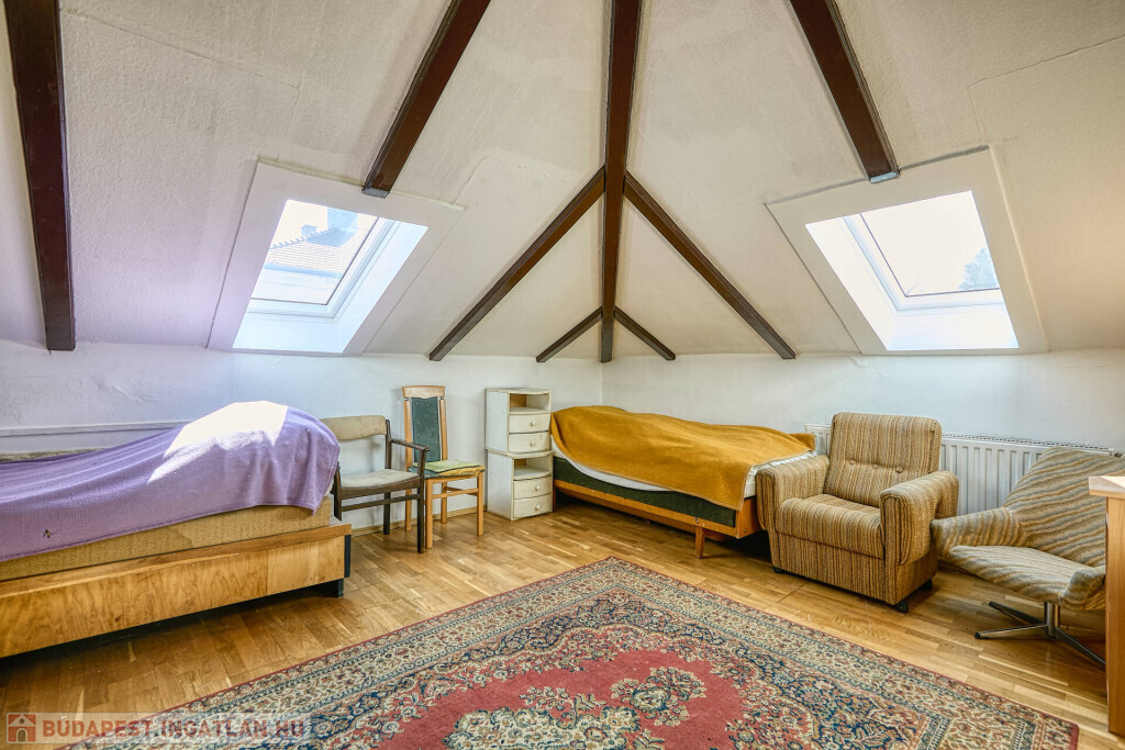 Bruttó 130 m²-es, tetőtéri lakás egy 4 lakásos, rendezett társasház első emeletén, 16 m²-es, déli tájolású terasszal, ahonnan csodás kilátás nyílik a Lővérekre.