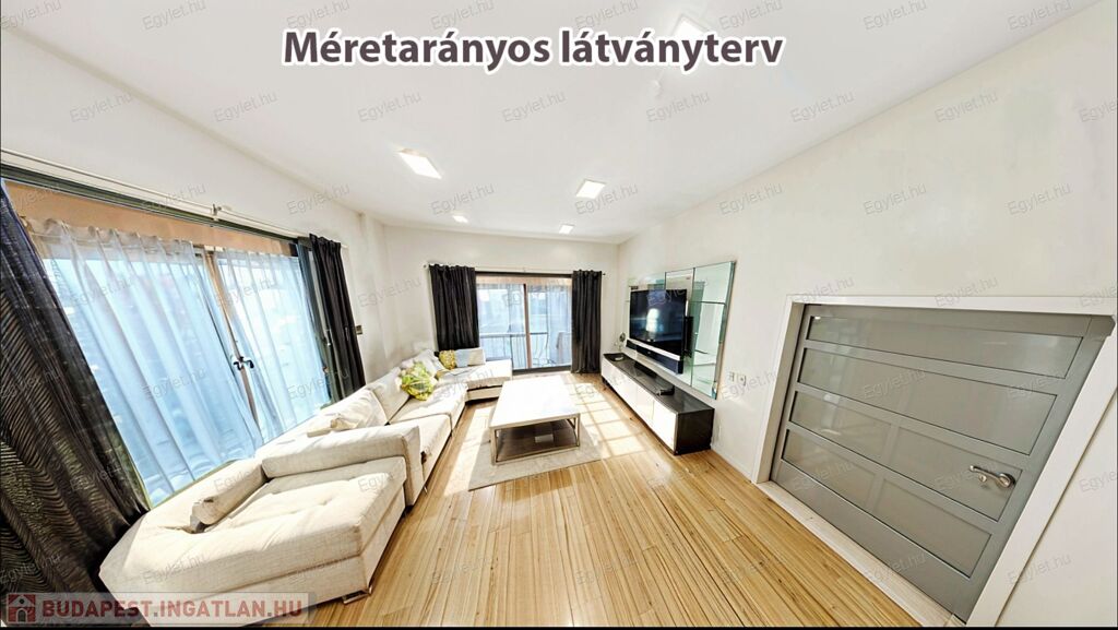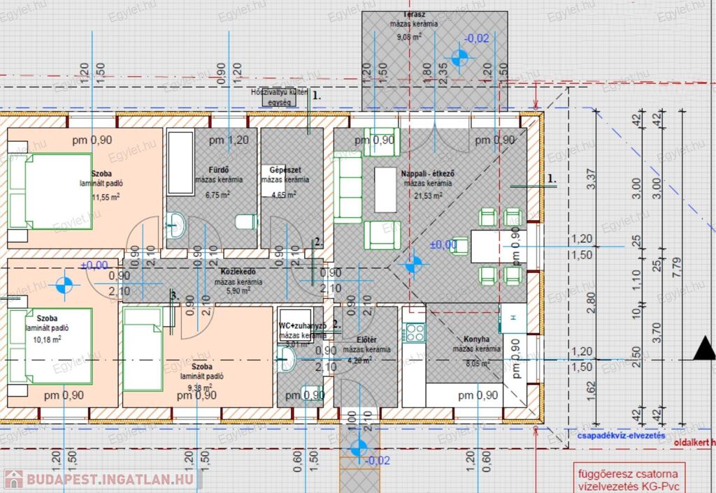 1. lakás: 94,4 m2 + terasz 9 m2 + 138 m2 saját használatú telek terület = 113.750.000 Ft