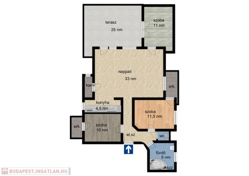 - 25 nm-es hatalmas terasz, napvédő rolóval.