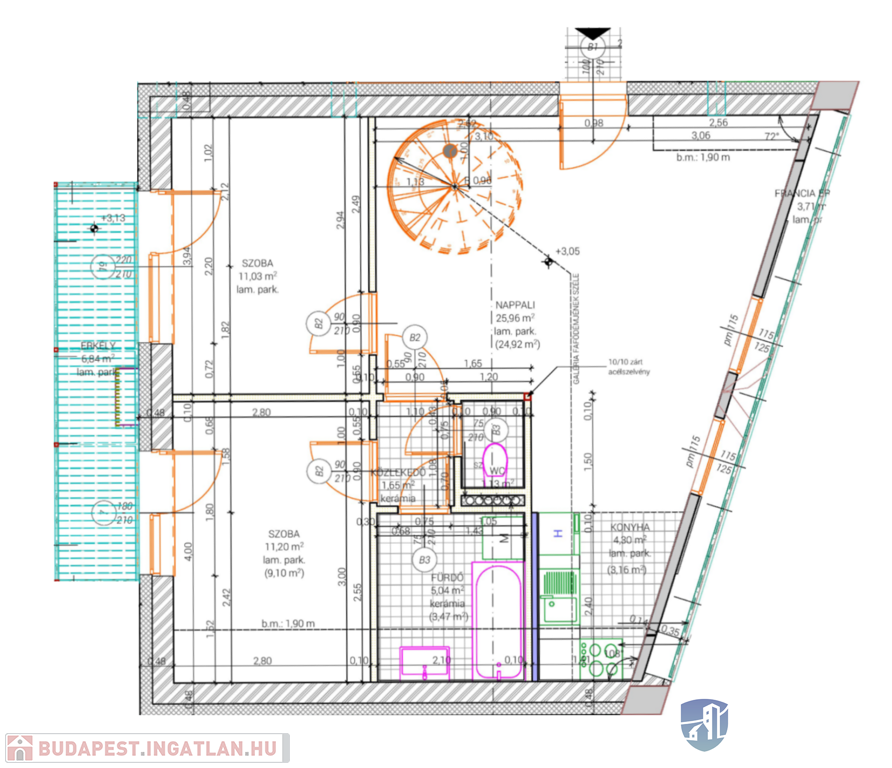 Új építésű 10 lakásos társasházban eladó, bruttó 104,49 m2 + 10,55 m2 erkély,nettó: 67,86 m2+ 10,55m2 erkély alapterületű, előtér+nappali+2 db hálószoba + fürdőszoba + WC, galéria + erkély + francia erkély elrendezésű, első emeleti lakás, szerkezetkész állapotban.