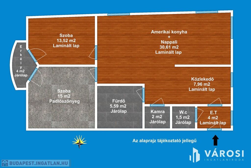 A lakás délkelet - délnyugati fekvésű, napfényes ingatlan.