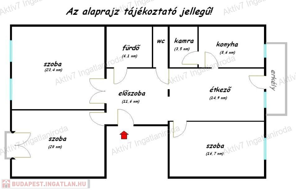 A tájékoztatás nem teljeskörű. A fotók széles látószögű géppel készültek, a helyiségek várható méretéről a leírás és / vagy az alaprajz nyújt tájékoztatást.