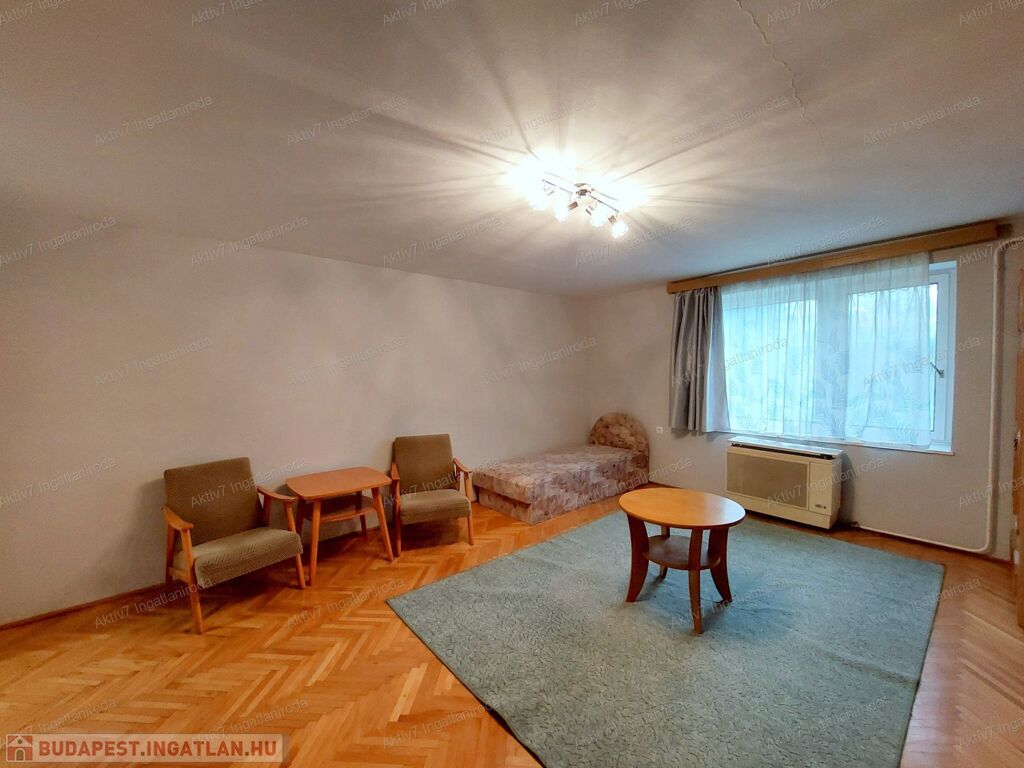 - Egy nagy méretű szoba és egy tágas konyha: a konyha akár szobává alakítható, így amerikai konyhás nappali + egy külön szoba is kialakítható.
