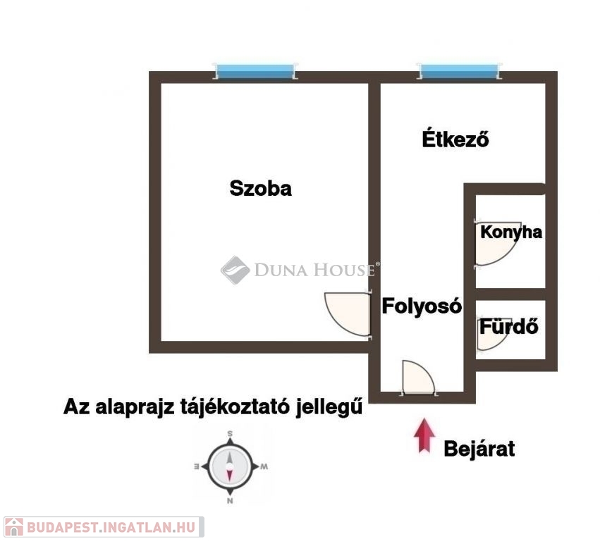 Helyiségek: tágas szoba, konyha étkezőrésszel, fürdőszoba