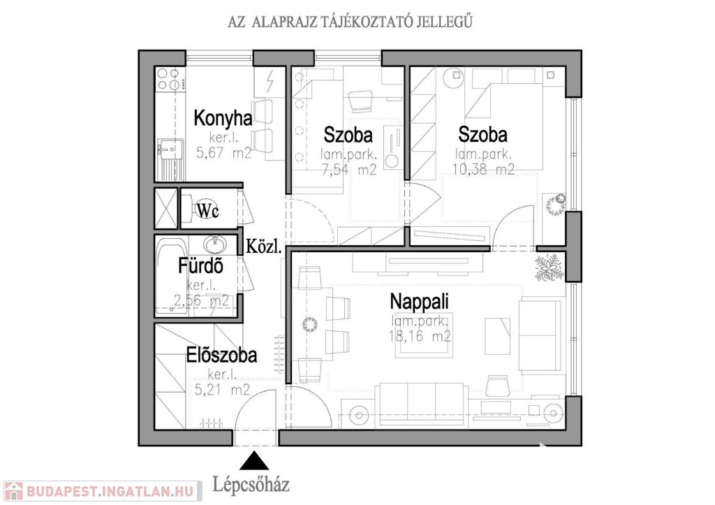 - 52,00 m2 alapterület (tulajdoni lap szerinti méret)