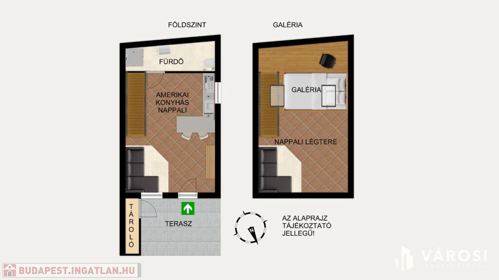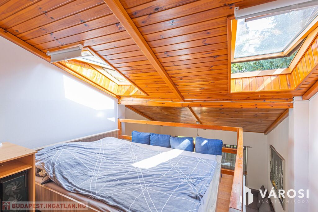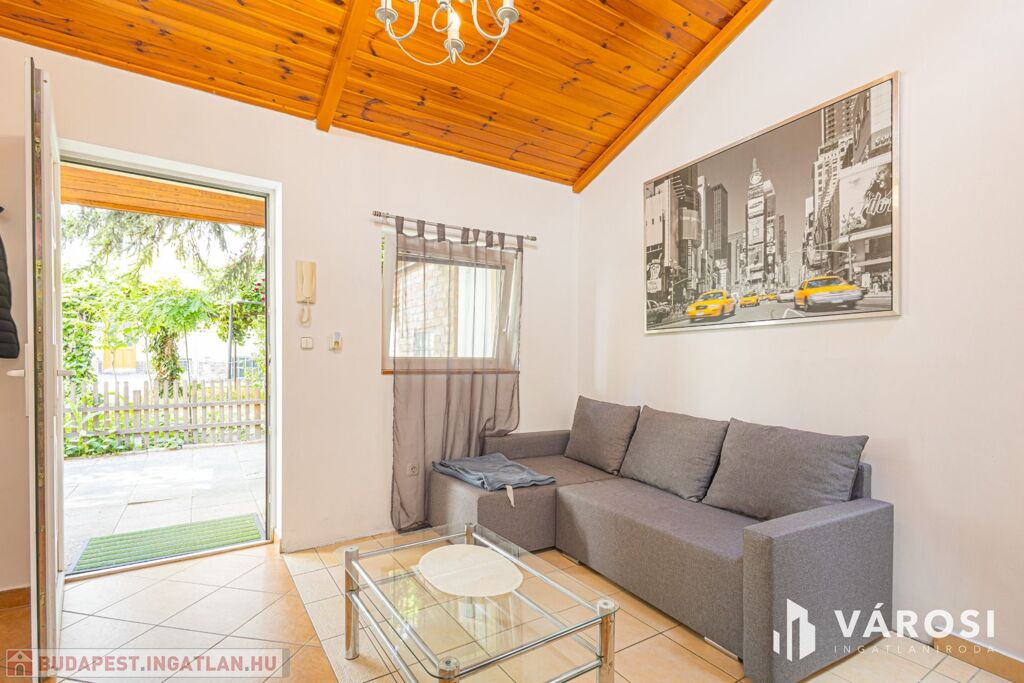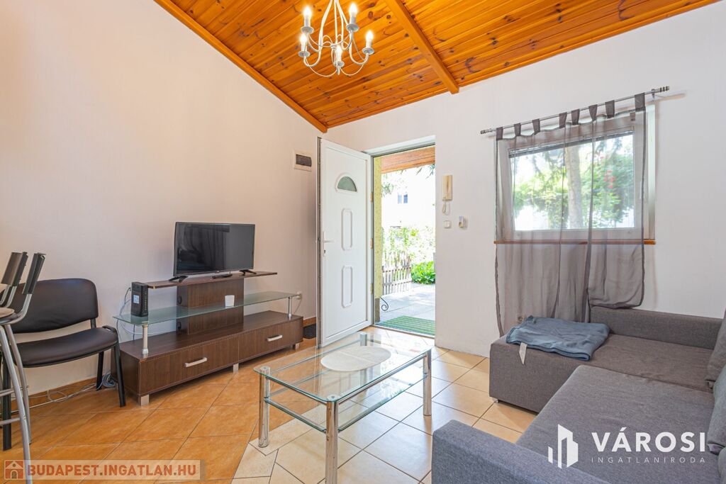 33 négyzetméteres alapterületén a bejárat irányába lejtő tetőszerkezet egy külön hálógaléria kialakítását tette lehetővé, az elrendezést a mellékelt alaprajz mutatja. Fűtése kombikazánról üzemel, padlófűtéssel, hűtését 3 hónapja felszerelt inverteres klíma végzi.