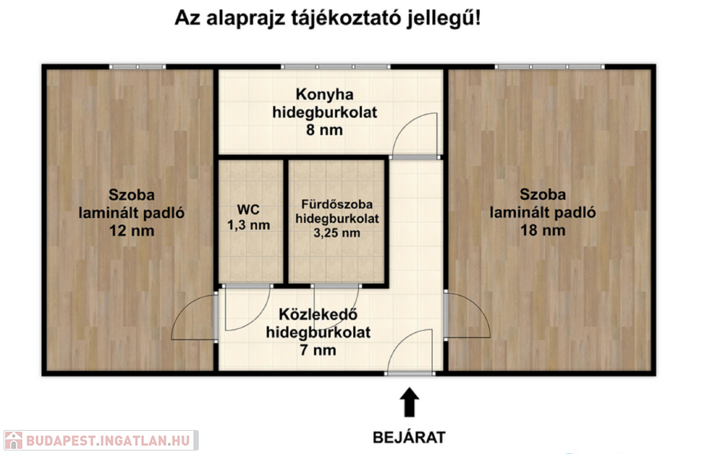- Laminált padló a szobákban, a többi helyiség hidegburkolatos.