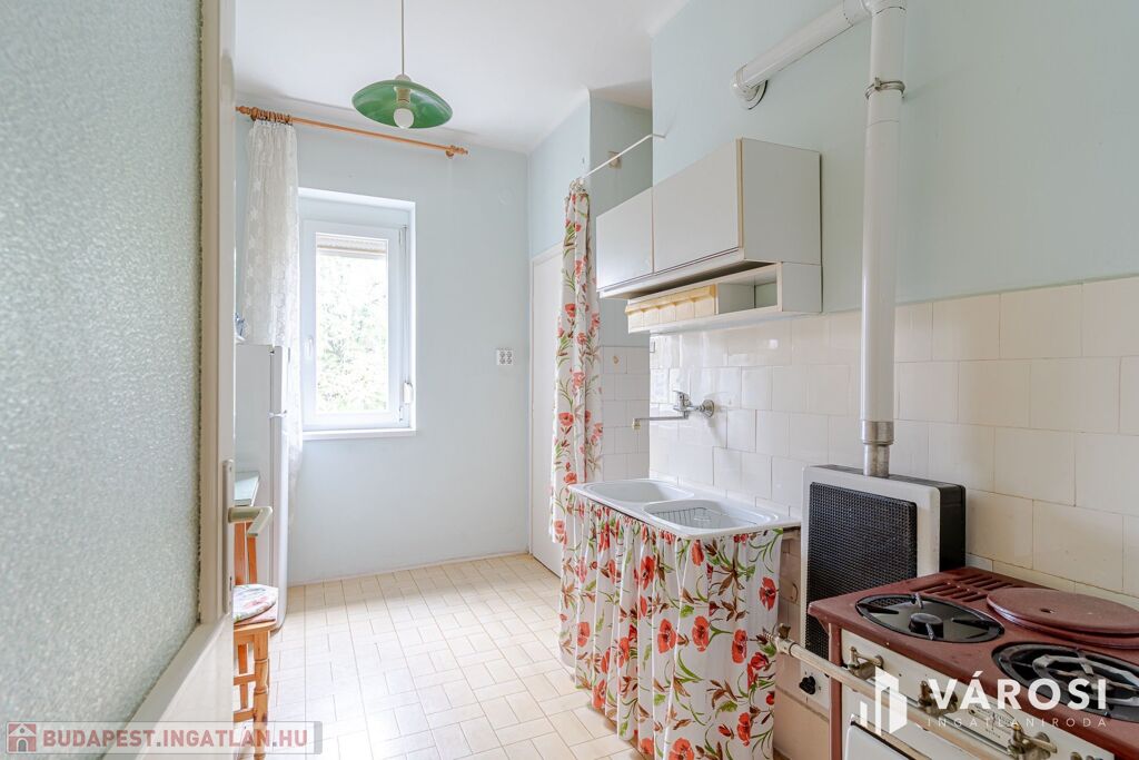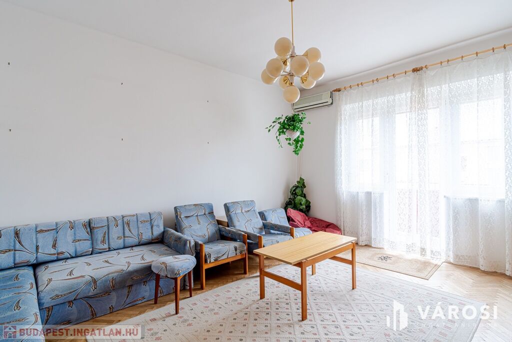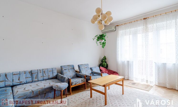 A lakás a 4. szinten helyezkedik el, zárószinti (nincs lift), így nincs felső szomszéd, a tető viszont felújított. Elosztása kedvező: két külön nyíló szoba, erkély, jól alakítható terek.