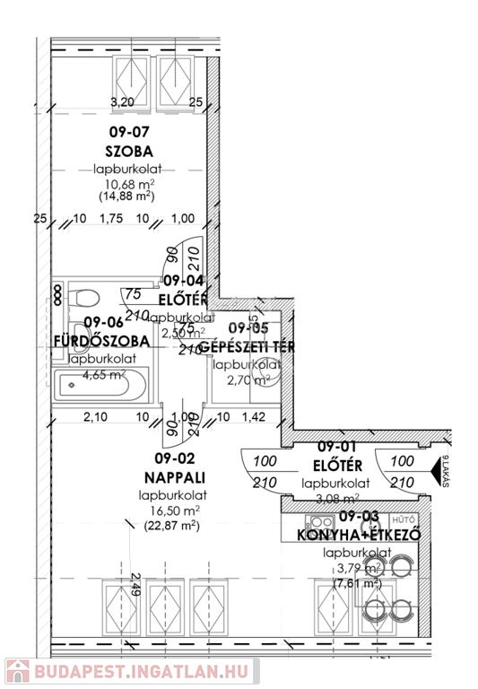 - nettó 44 m² (kb. 52 m² bruttó)
