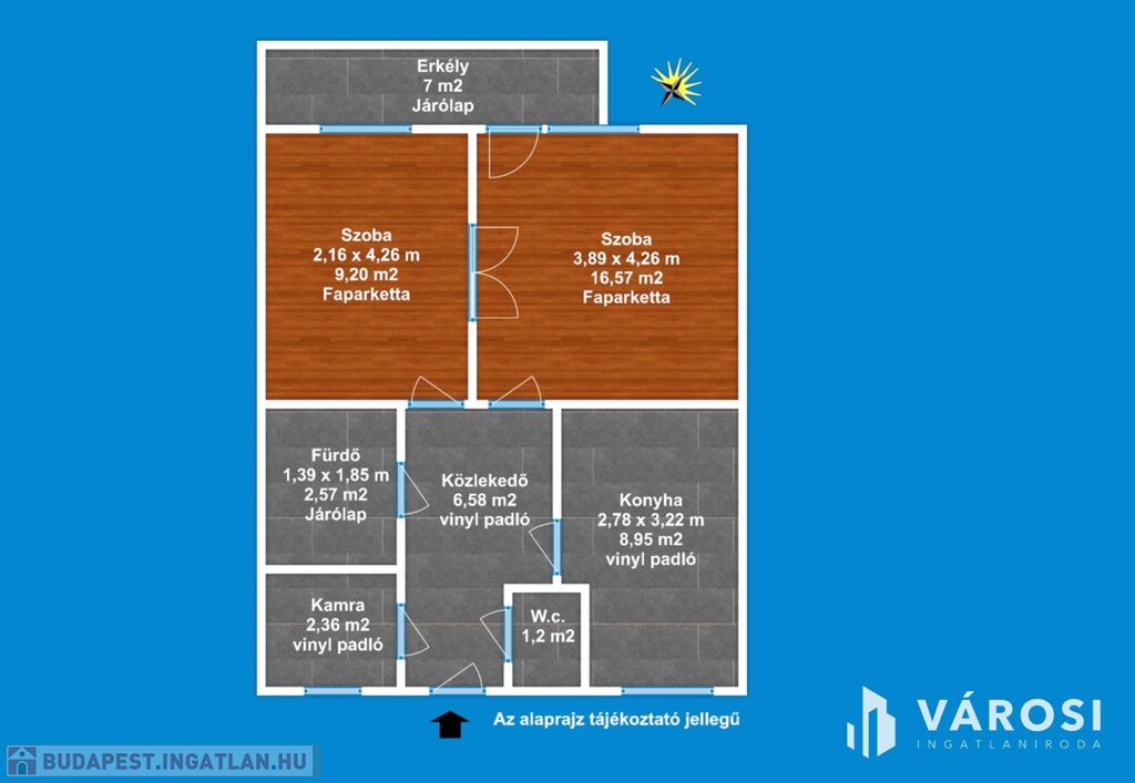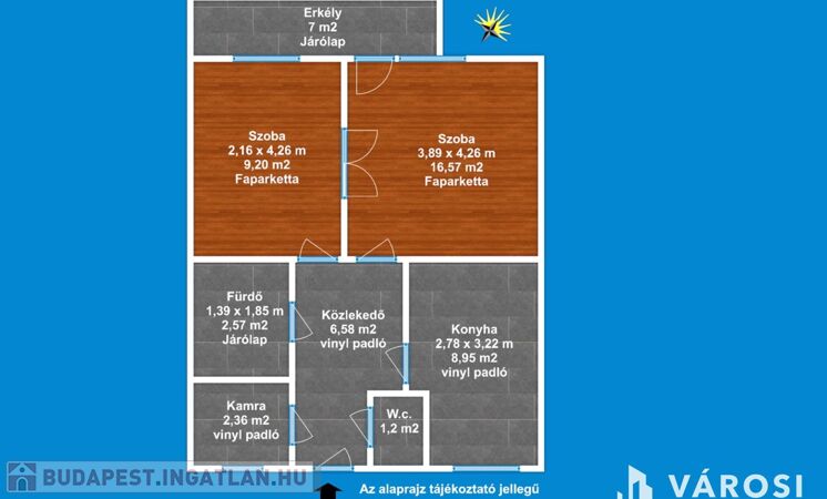 A lakás délkeleti tájolása, miatt rendkívül napfényes ingatlan.