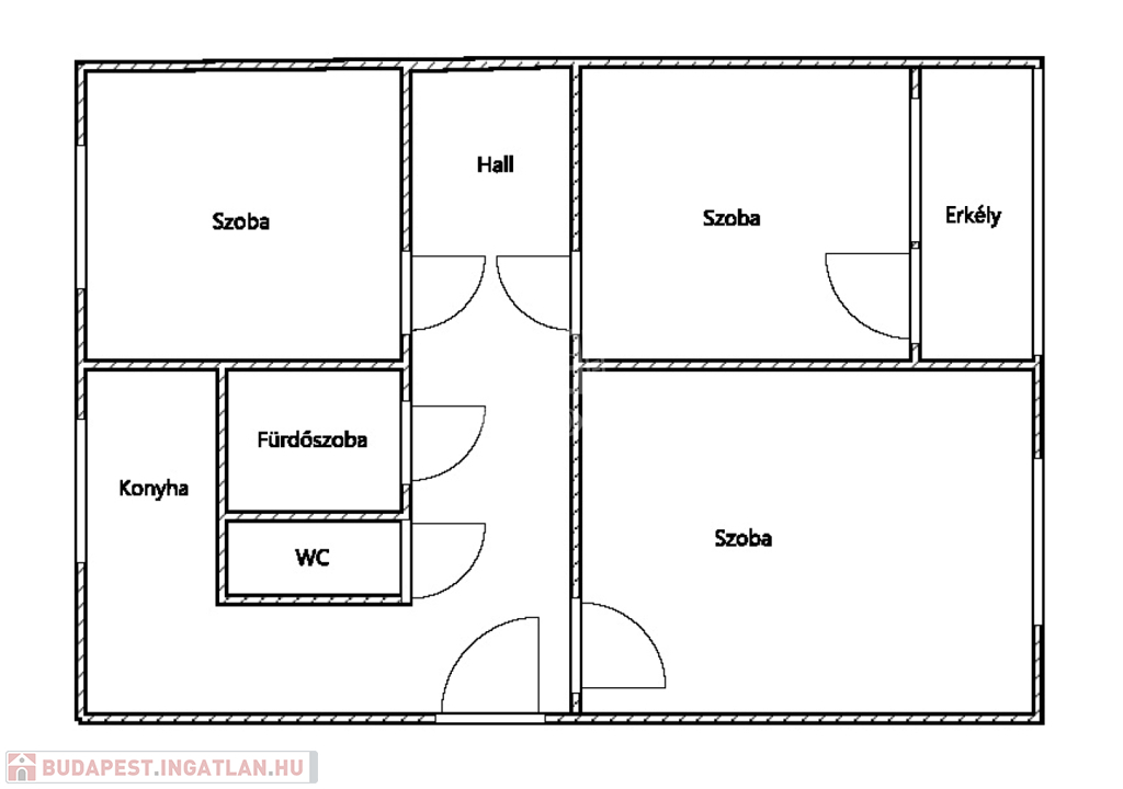 Elrendezés: 1+2 különnyíló szoba, konyha, fürdőszoba, külön WC, közlekedő, erkély