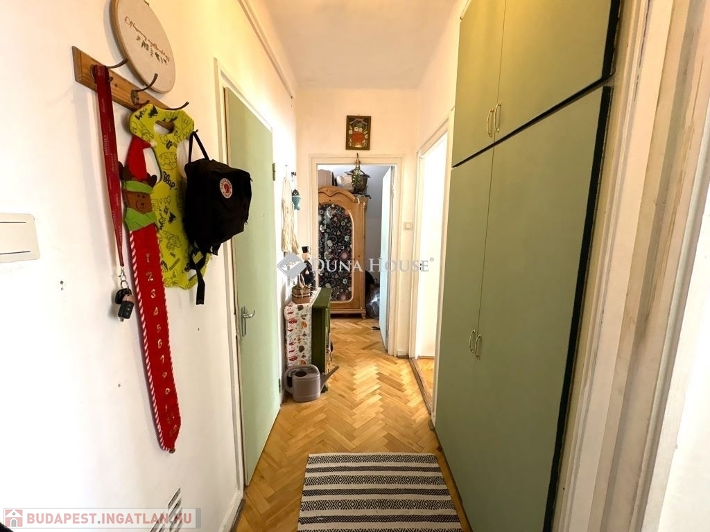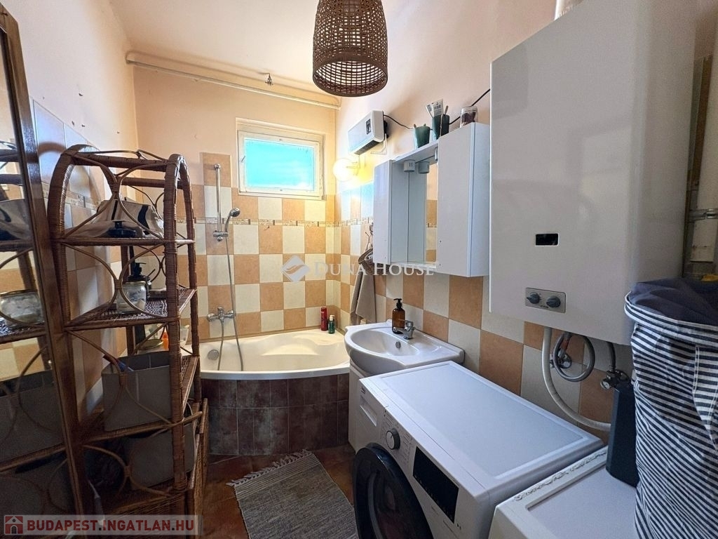 A két lakószoba klímával felszerelt, délkeleti tájolású, világos. A felújított konyha ablakából szép kilátás nyílik a Szent István téri víztoronyra. A fürdőszoba igényesen kialakított, sarokkáddal felszerelt.