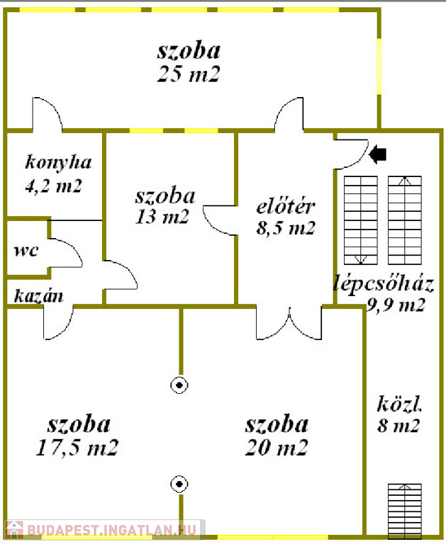 Szegeden a Brüsszeli körúton 100 m2-es, 3 szobás, 1. emeleti, kertkapcsolatos, cirkó fűtésű, klimatizált lakás, 335 m2-es telken (50 %-os használattal), két lakásos házban, tehermentesen, gyors birtokba adási lehetőséggel eladó. Fürdőszobát ki kell alakítani, mert jelenleg irodaként funkcionál. Az ingatlan nemcsak otthonként, de irodának, telephelynek is ideális.