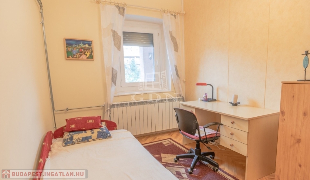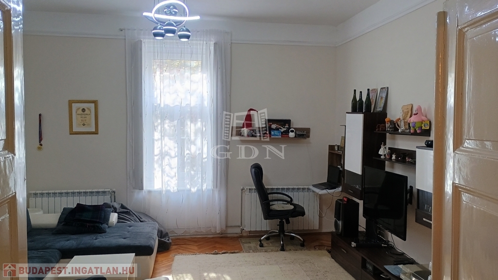A két szobás, első emeleti ingatlan felújítása során korszerű hőszigetelt ablakok lettek beépítve amik a déli tájolású utcai frontra, illetve a belső, zöld udvarra néznek. A fűtés kondenzációs kazánnal lett megoldva, a hűtésről klíma gondoskodik.