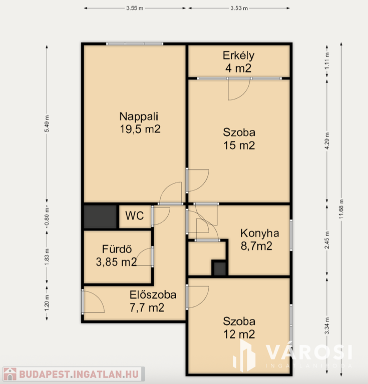 A lakás udvari elhelyezkedésű, rendkívül csendes! 3 szobás elrendezése többféle átalakítási lehetőséget rejt magában.