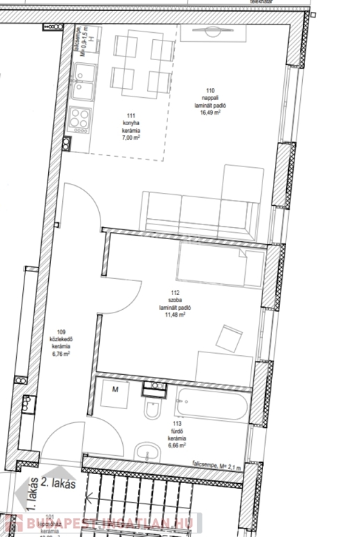 Társasházban változatos alapterületű lakások köthetőek le 22 m2-től -78 m2-ig, amelyek 31,6 -108,7 M. forintos áron vásárolhatóak meg.