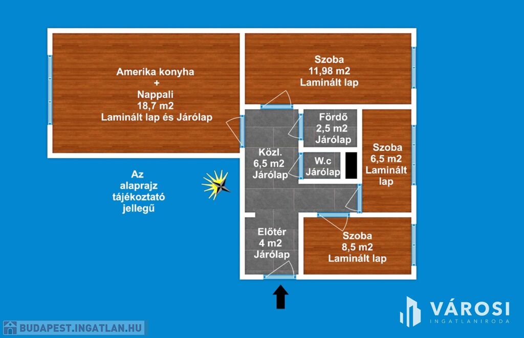 A lakás 1 db amerikai konyhás nappalival, 3 db hálószobával, 1 db fürdőszobával, külön Wc-vel, közlekedővel, előtéttel rendelkezik. Az ingatlan elhelyezkedésre, kialakítása miatt rendkívül sokrétű a felhasználása - akár lakás, vagy befektetési célra -, amely maximálisan kiemeli ezt az ingatlant az átlagos lakások sorából és egyedülálló választássá teszi azt.