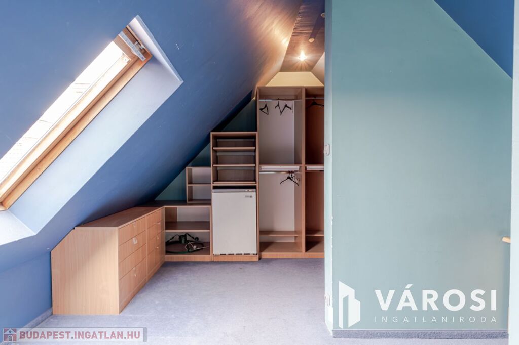 A nappaliból egy kényelmes lépcső vezet fel az emeletre, ahol egy egybenyitott, sokoldalúan alakítható tér található. Jelenleg egy hálórész, dolgozósarok és gardrób kapott itt helyet, de könnyedén két különálló szobává alakítható - tökéletes gyerekszobának vagy akár egy extra hálónak.