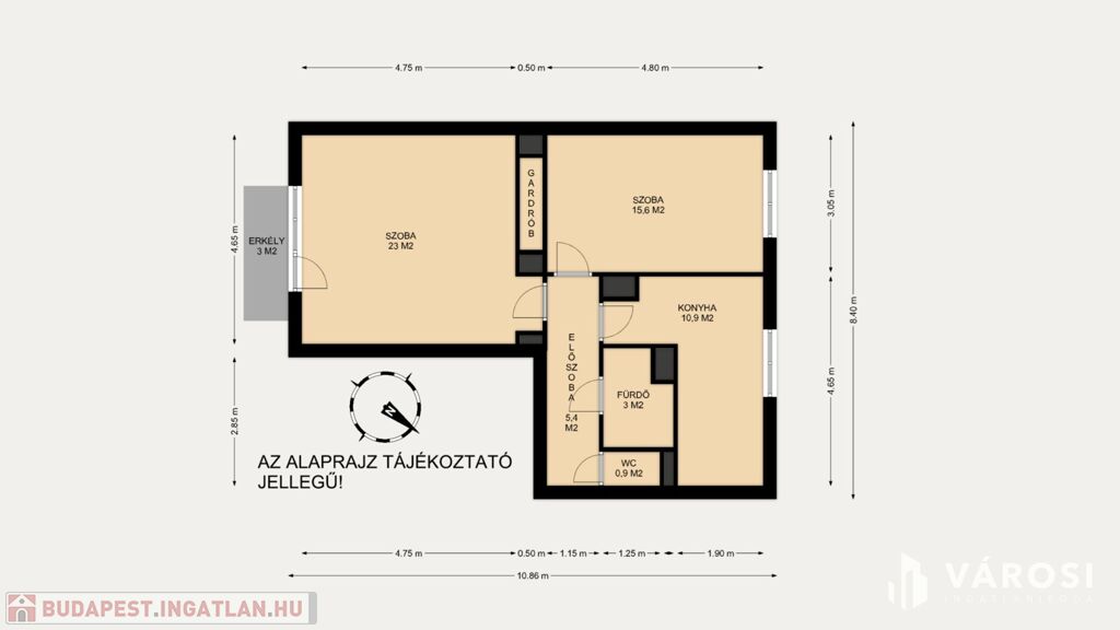 A lakás elrendezése albérletezésre, vagy akár saját célra is jól használható, a feltöltött képek között látható méretekkel.