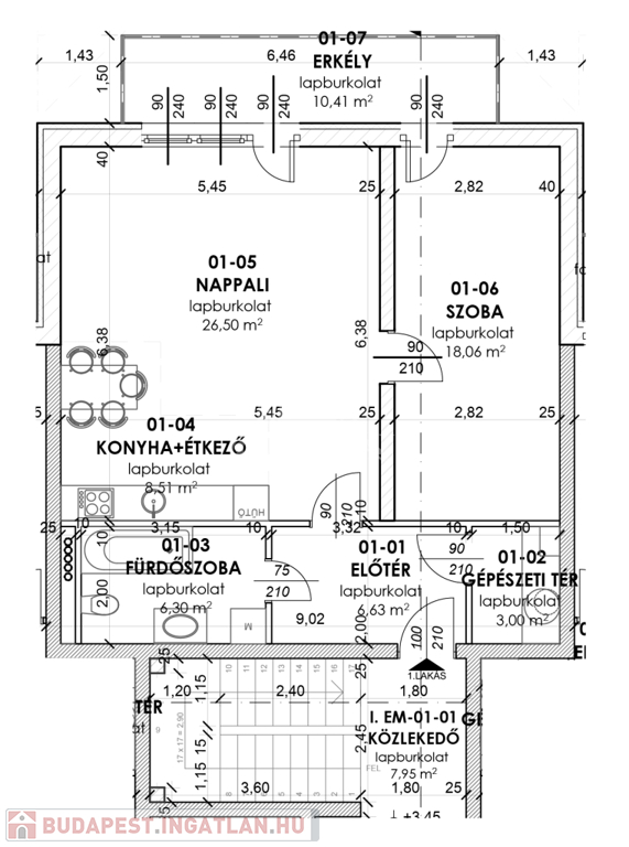 A nappaliból és a hálószobából is közvetlen kijárat nyílik az erkélyre.