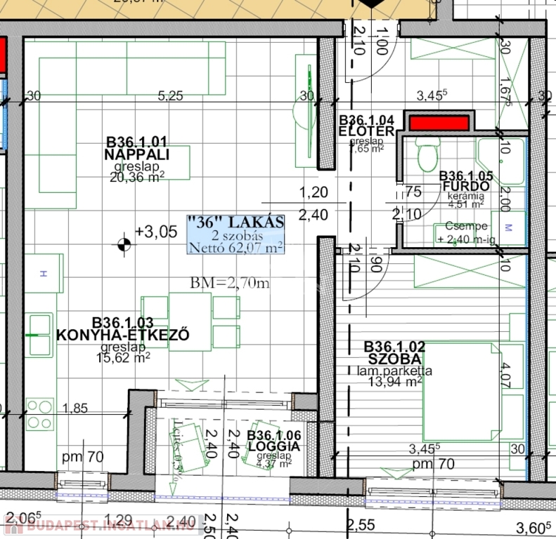 B36. lakás: 62,07nm