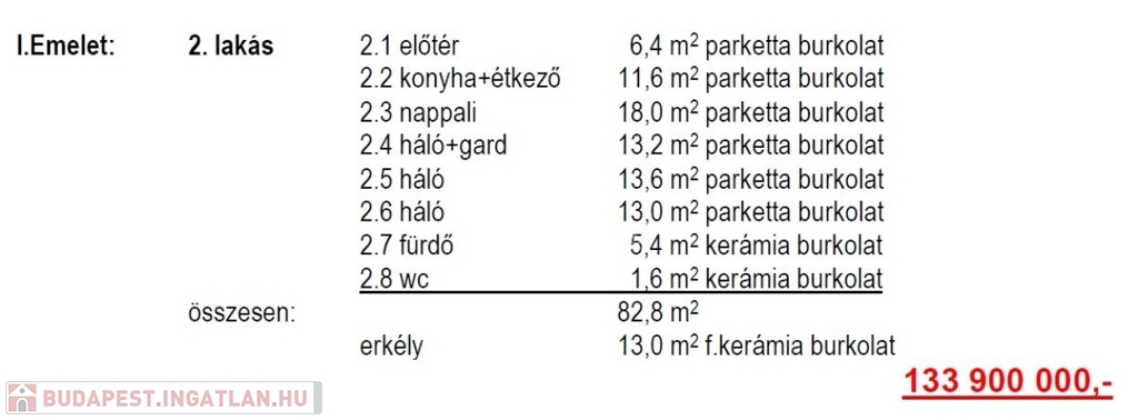 Irányár: 133,9 millió Ft