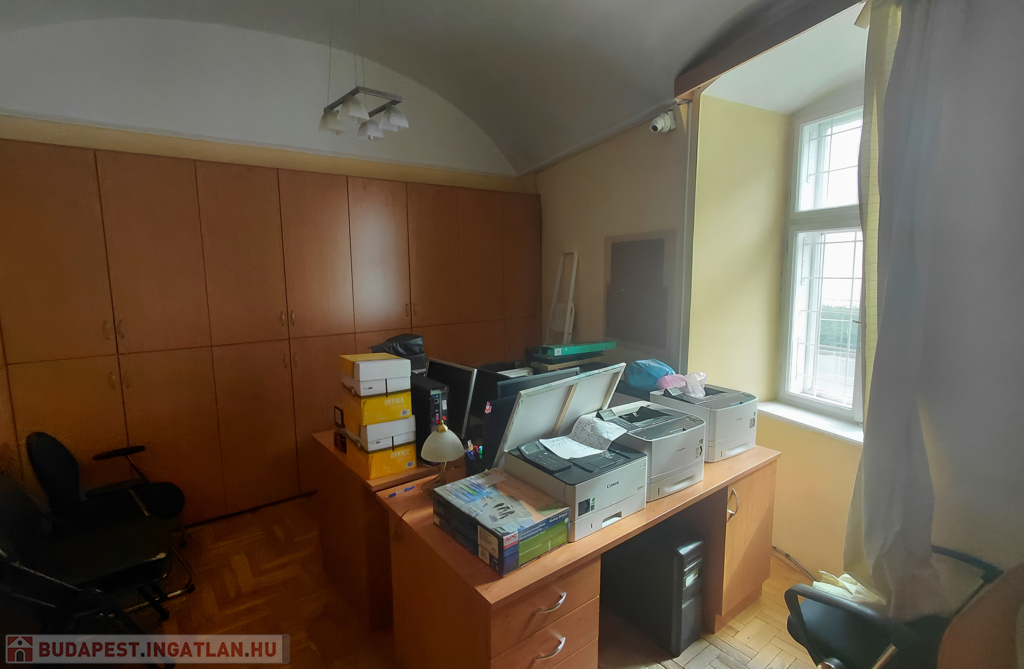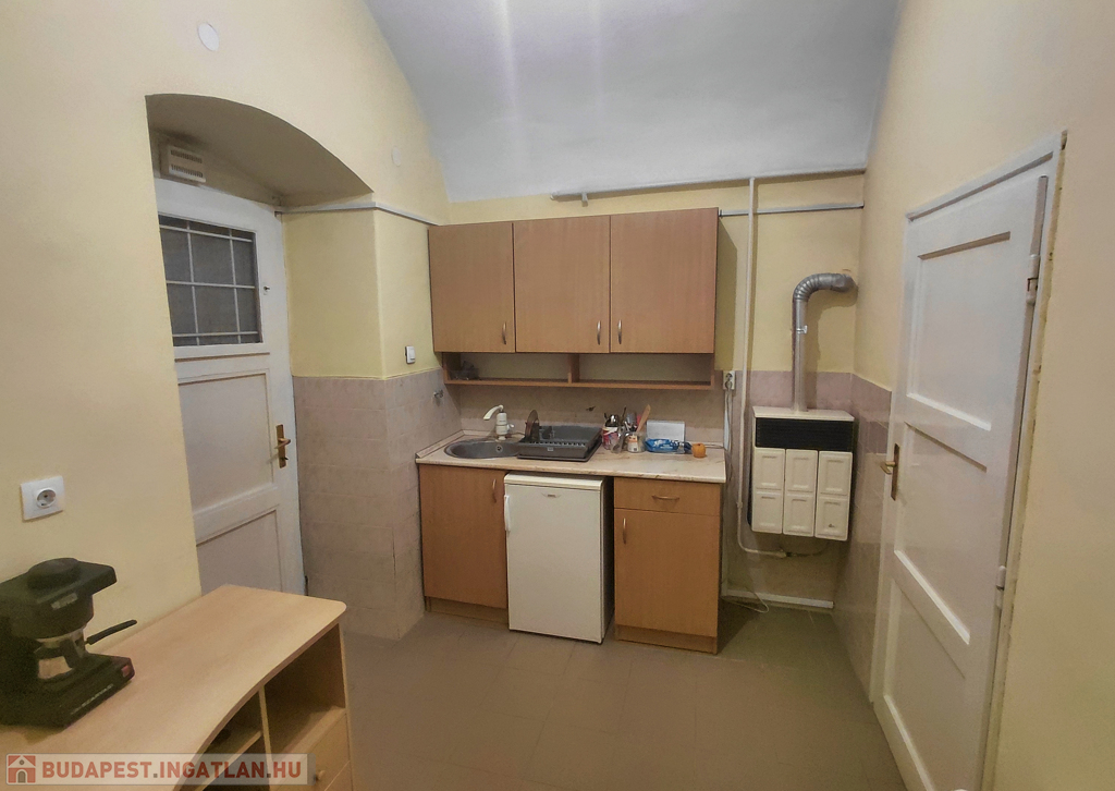 A téglaépítésű, két szobás ingatlan egyedi belső elrendezésének köszönhetően sajátos hangulatot teremt. A széles előszobából egy szoba nyílik, innen juthatunk tovább a másik szobába, majd a belső konyhába. Az egymásból nyíló terek elrendezése nyugodt, zavartalan atmoszférát teremt, legyen szó otthonról, irodáról vagy akár rendelőről.