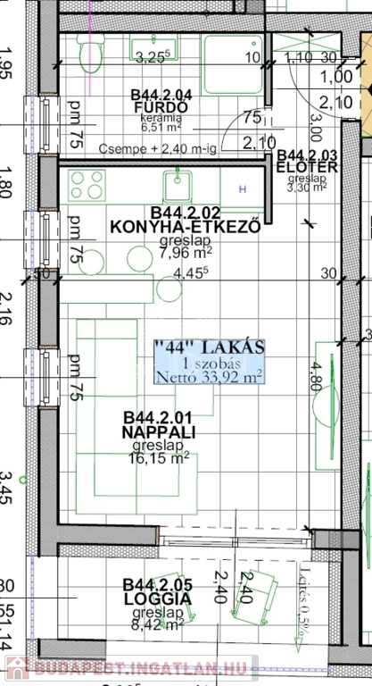 B44. lakás: 33,92nm