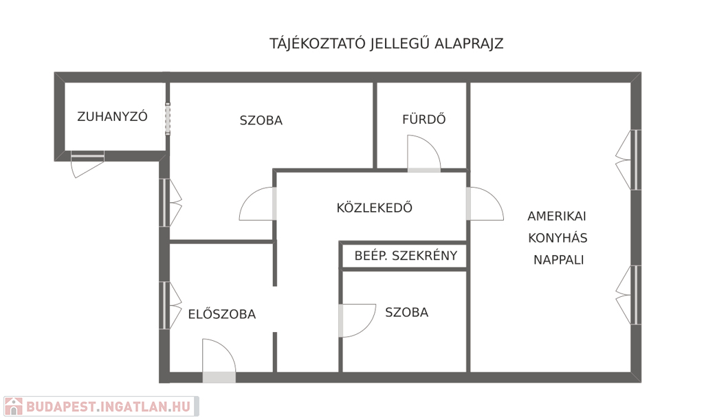 Az 1. emeleti otthon amerikai konyhás nappalival és két külön nyíló szobával rendelkezik, így a tágas közösségi tér és a nyugodt elvonulás egyaránt biztosított. A két fürdőszoba ritka kényelmet ad a mindennapokban, a beépített szekrények pedig diszkréten szolgálják a praktikusságot.