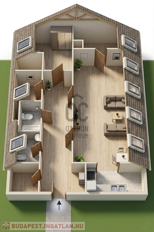 Külön értéket képvisel, hogy a lakás mellett közvetlenül egy hasonló méretű, beépítetlen padlástér található, amely további bővítési vagy hasznosítási lehetőségeket kínál.