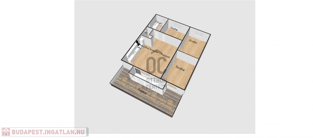 A három hálószobán kívül, a 107m2-en a lakás magában foglal egy hatalmas amerikaikonyha-nappalit, egy saját lépcsőházat, egy fürdőszobát, egy mellékhelyiséget és egy reprezentatív erkélyt.