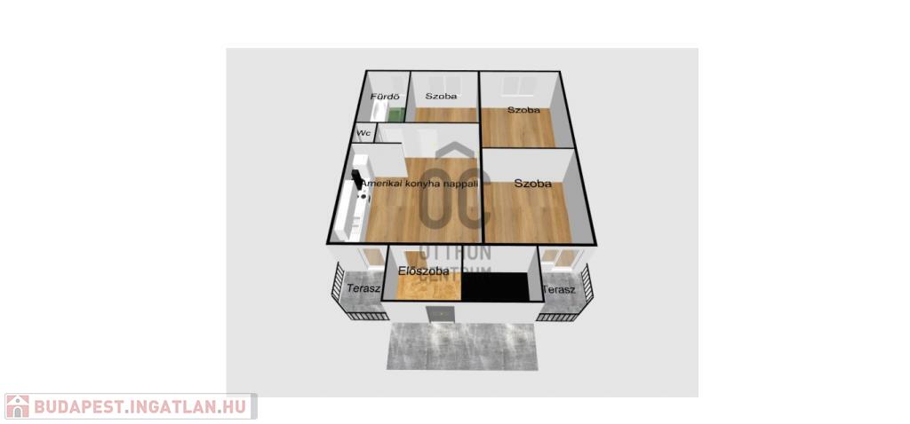 A három szobán kívül, a 100m2-en a lakás magában foglal egy hatalmas amerikaikonyha-nappalit, egy tágas előszobát, egy fürdőszobát, egy mellékhelyiséget és kettő erkélyt.