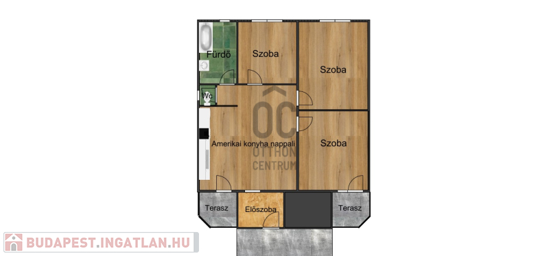 A három szobán kívül, a 100m2-en a lakás magában foglal egy hatalmas amerikaikonyha-nappalit, egy tágas előszobát, egy fürdőszobát, egy mellékhelyiséget és kettő erkélyt.