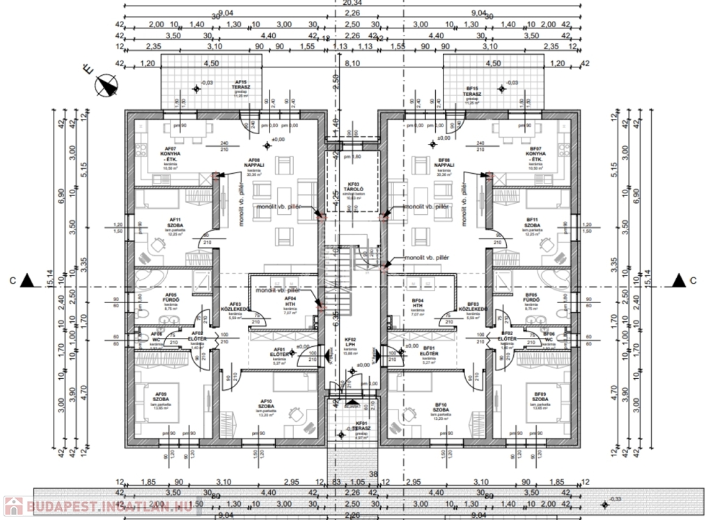 Az épület beton alapra, 30-as síkra csiszolt tégla falazattal, monolit beton födémmel, beton cserép fedéssel épül meg.