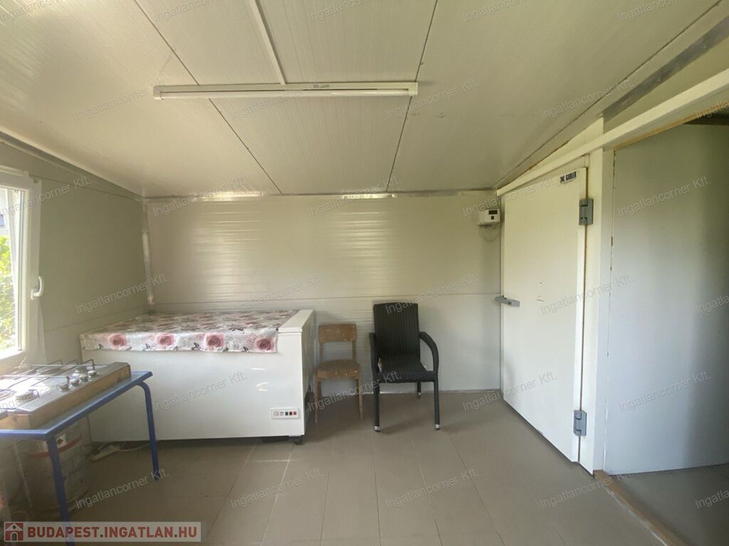 A telek sarkában egy hűtőkamrás nyárikonyha, ahol a kertben termett gyümölcsök télire eltehetők, jó helye van itt a savanyúságoknak, vagy akár egy jó kis disznóvágásnak is.
