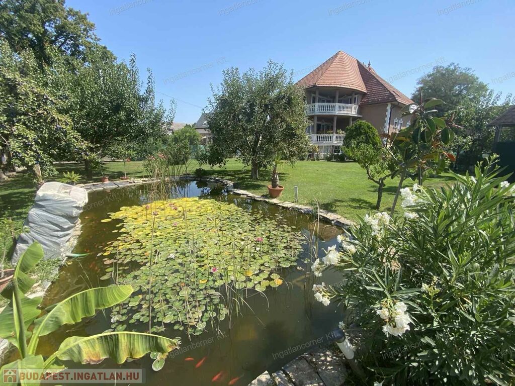 A hatalmas udvar gyönyörűen parkosított, termő gyümölcsfákkal beültetett. ( sárgabarack, őszibarack, szilva, szőlő stb)egy nagy kerti tó ékesíti a hátsó részt, tele szebbnél szebb halakkal.