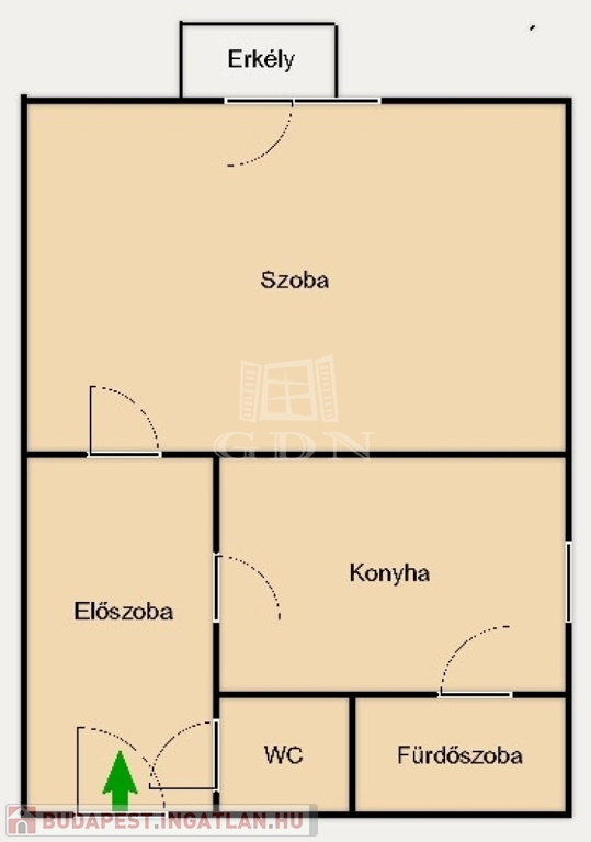 A 34 négyzetméteres ingatlan a 2. emeleten helyezkedik el, ideális választás lehet egyedülállók vagy fiatal párok számára.