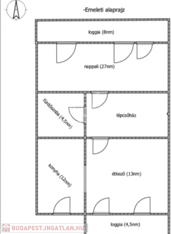 - nappali nagy ablakokkal, nyugati fekvésű loggia kapcsolattal,
