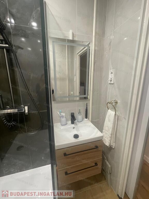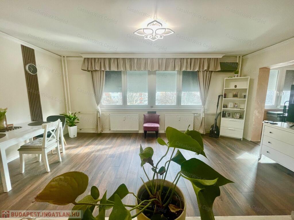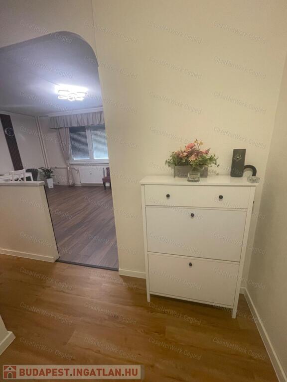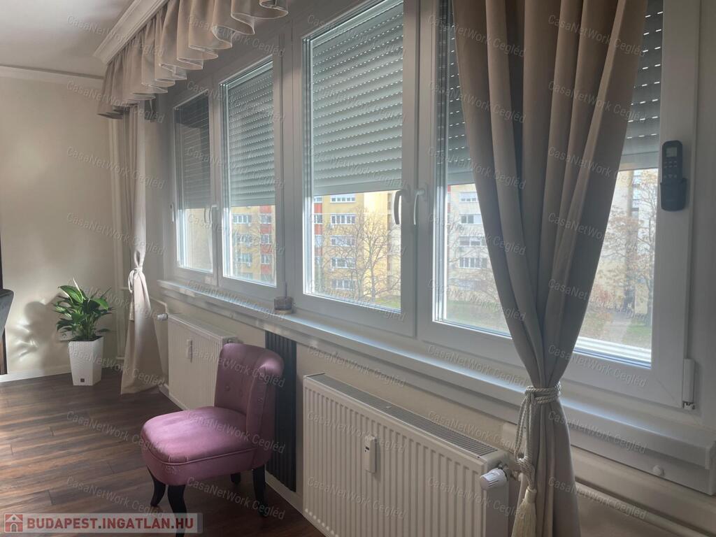 Az eladóvá vált 3. emeleti, 2 szobás panellakás az elmúlt két évben jelentős felújításon esett át. A felújítás kiterjedt a villanyvezetékek teljes átvezetékelésére, egységes vízálló laminált padló burkolat cserére, egyedi konyhabútor és gardrób beépítésre, hűtő-fűtő klíma elhelyezésére, a fürdőszoba és wc teljes felújítására és komplett festésre. A nyílászáró 3 rétegű hőszigetelt üveggel, elektromos redőnnyel, rovarhálóval ellátottak.