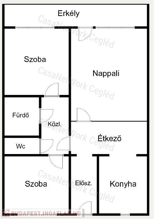 - Térelosztás: 3 szoba, konyha-étkezővel, közlekedő, folyosó, fürdőszoba, külön WC, ERKÉLY !