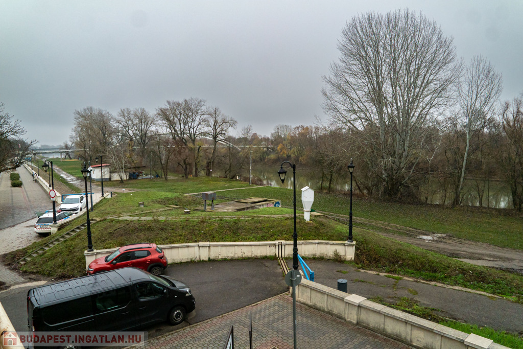 A lakás tágas, világos terei és nagy ablakfelületei egész nap természetes fényt biztosítanak, miközben a nappaliból és/vagy erkélyről zavartalan kilátás nyílik a Tiszára – nem egy „majd egyszer látni fogod” panoráma, hanem az a bizonyos wow élmény.